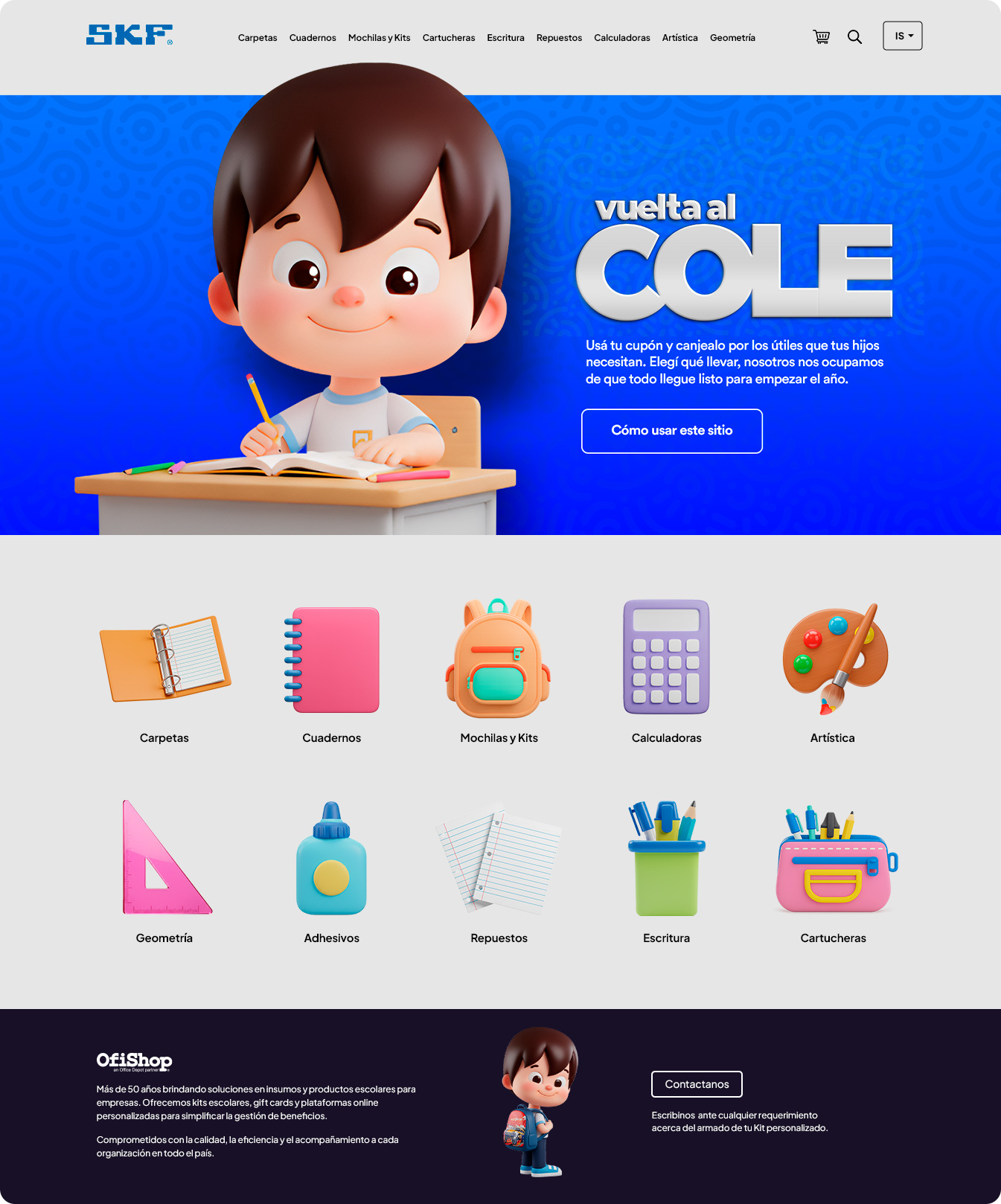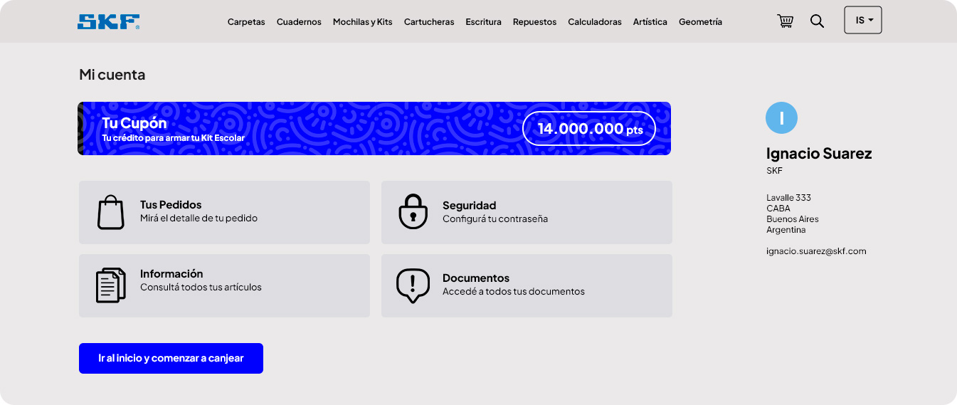 Al iniciar sesión podrás visualizar la portada del sitio en donde podrás empezar a completar tu kit canjeando tus puntos por útiles escolares.